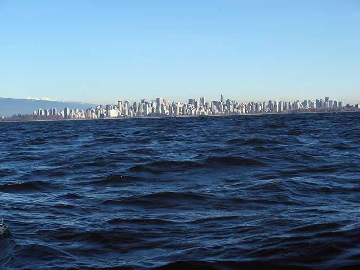 ... 1) a rough sea in English Bay with the Vancouver skyline in the background - photo by Richard Copley