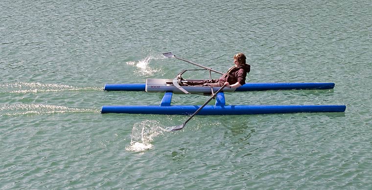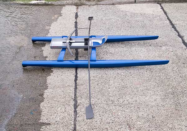 23 May 2006 In an effort to try and understand the 'gearing' question better, I decided to draw the power stroke (catch to perpendicular) for a regular sculling boat and the ROCAT. Jake felt that the ROCAT stroke was considerably shorter than his coastal scull but, on measuring the two strokes, there was only 50mm in it. On his return to Southampton, Jake sent an analysis of his ROCAT row. Following a detailed critique of the ROCAT stroke he said, Have a look at the drawing to see how high the gearing is for the ROCAT power stroke it's a .pdf, so I hope you can open it OK. I really must get some blog or forum software going, because this would make a good discussion. But, meanwhile, please email your observations ... CL ... a drawing of the power strokes of a regular sculling boat and the ROCAT |